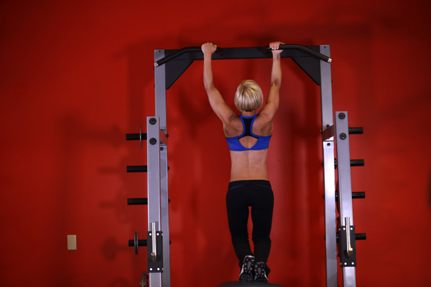 1. Si eres nuevo en este ejercicio y no tienes la fuerza para realizarlo, utiliza una máquina para asistencia de dominadas si está disponible. Estas máquinas utilizan peso para ayudarte a empujar tu peso corporal.