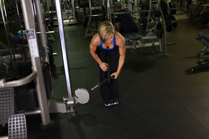 1. Selecciona un peso y sujeta el mango de la polea baja con la mano derecha.