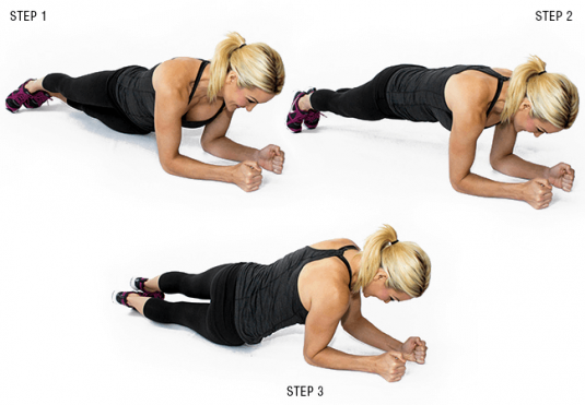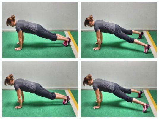 4. Inmersión de cadera en plancha: 16 repeticiones, 16 en cada lado.
