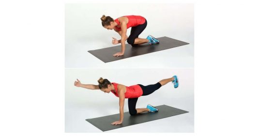 3. Crunch de perro pájaro: 10 repeticiones por cada lado.